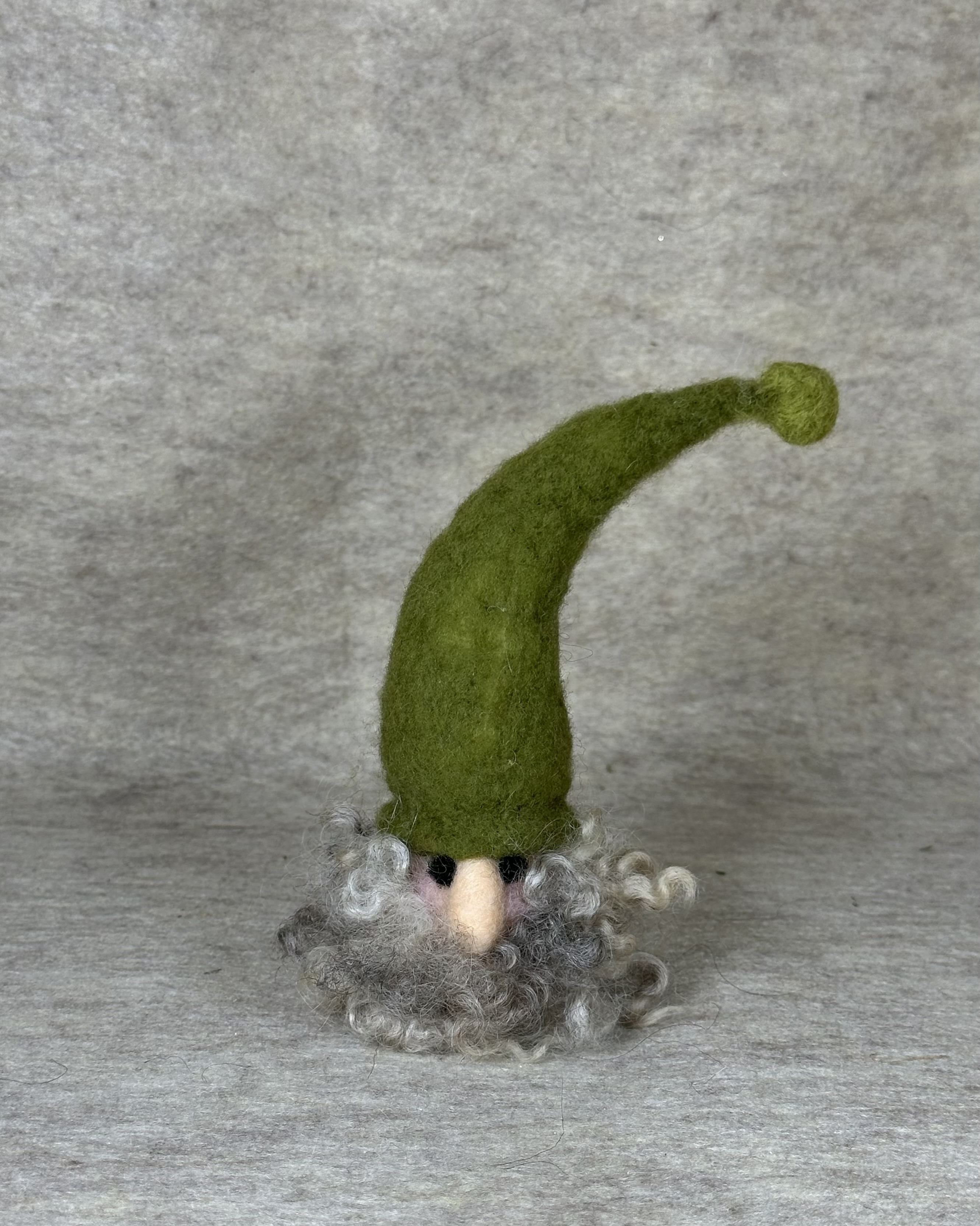 This charming gnome stands 7” tall to the top of his hat and is meticulously crafted from 100% wool through the process of needle felting. Place him on your bureau or desk for good luck and a touch of whimsy. He also makes a thoughtful gift for a friend who needs a reminder that you are always there for them.