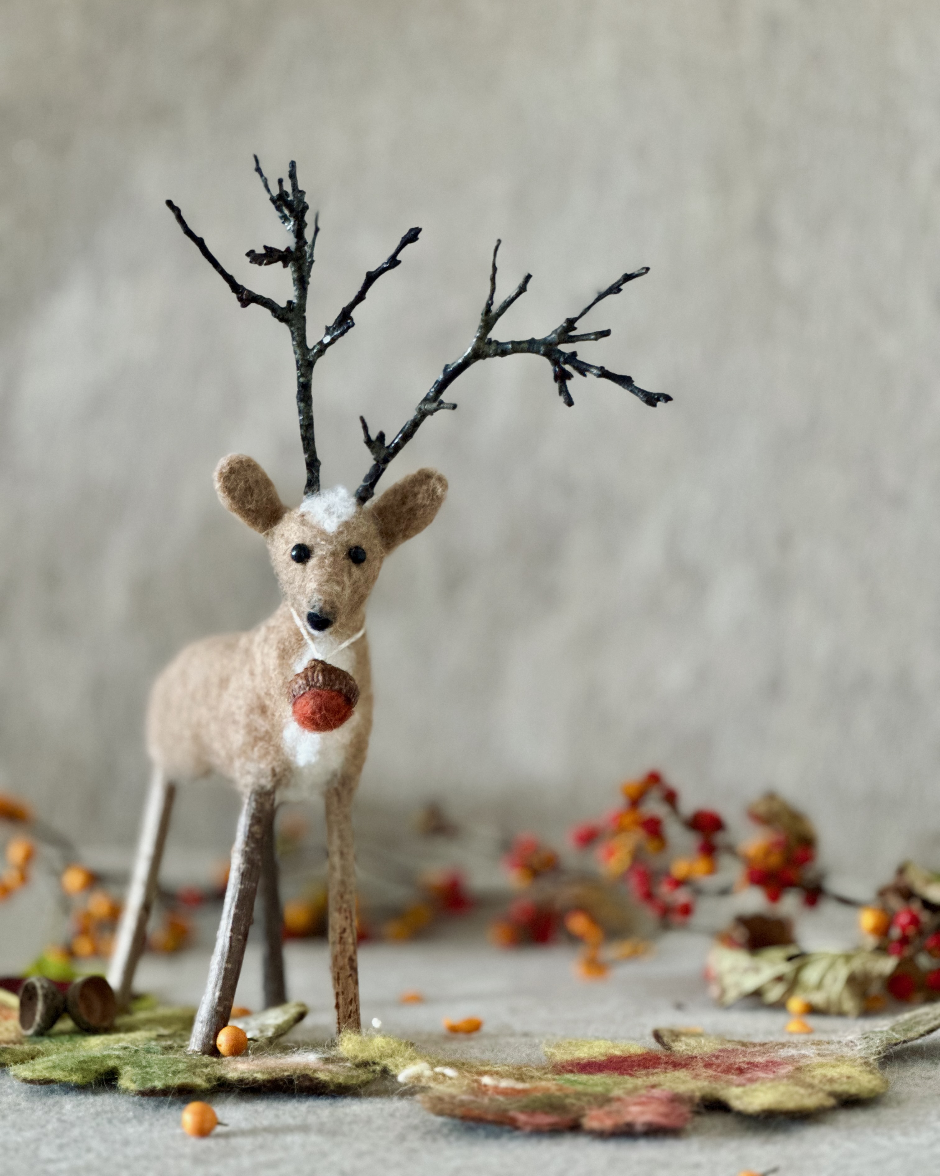 Transform your seasonal decorating with this enchanting handmade harvest deer that captures autumn's soul in premium wool.