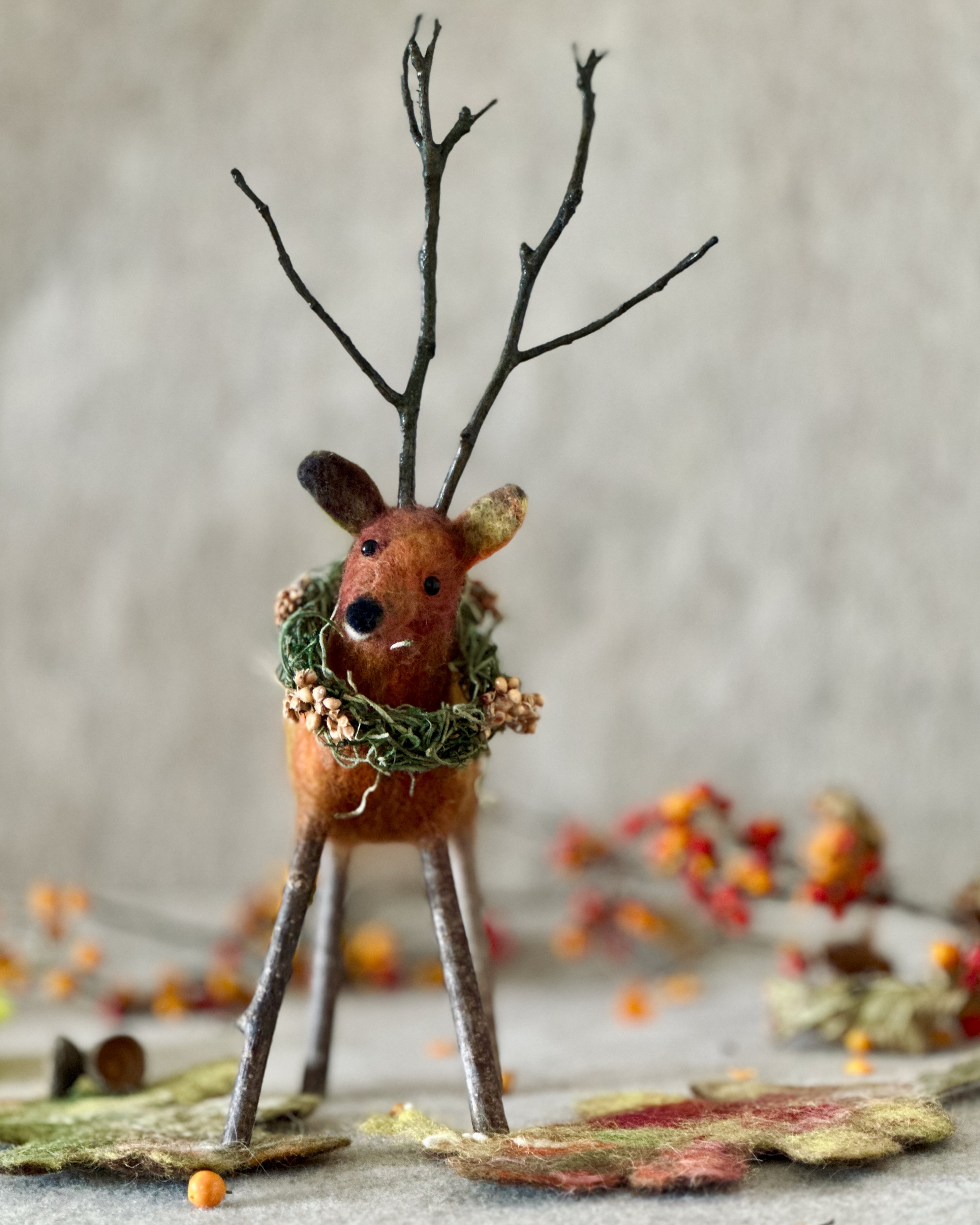 Handcrafted Harvest Deer "Chestnut" - Autumn Centerpiece | Needle Felted Fall Décor