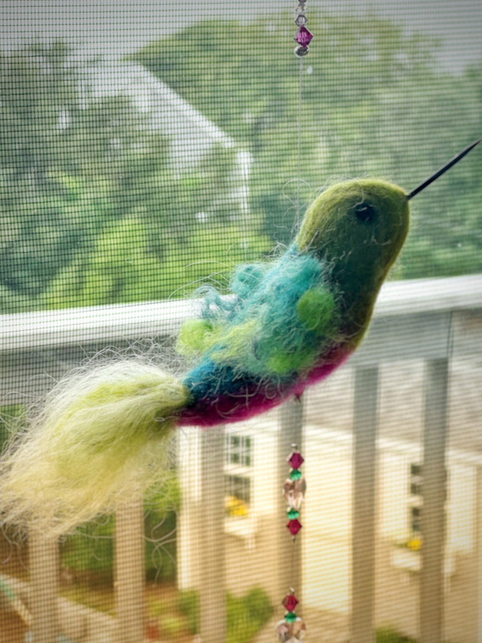 “Hummingbird Light catcher” – A One-of-a-Kind Felted Delight