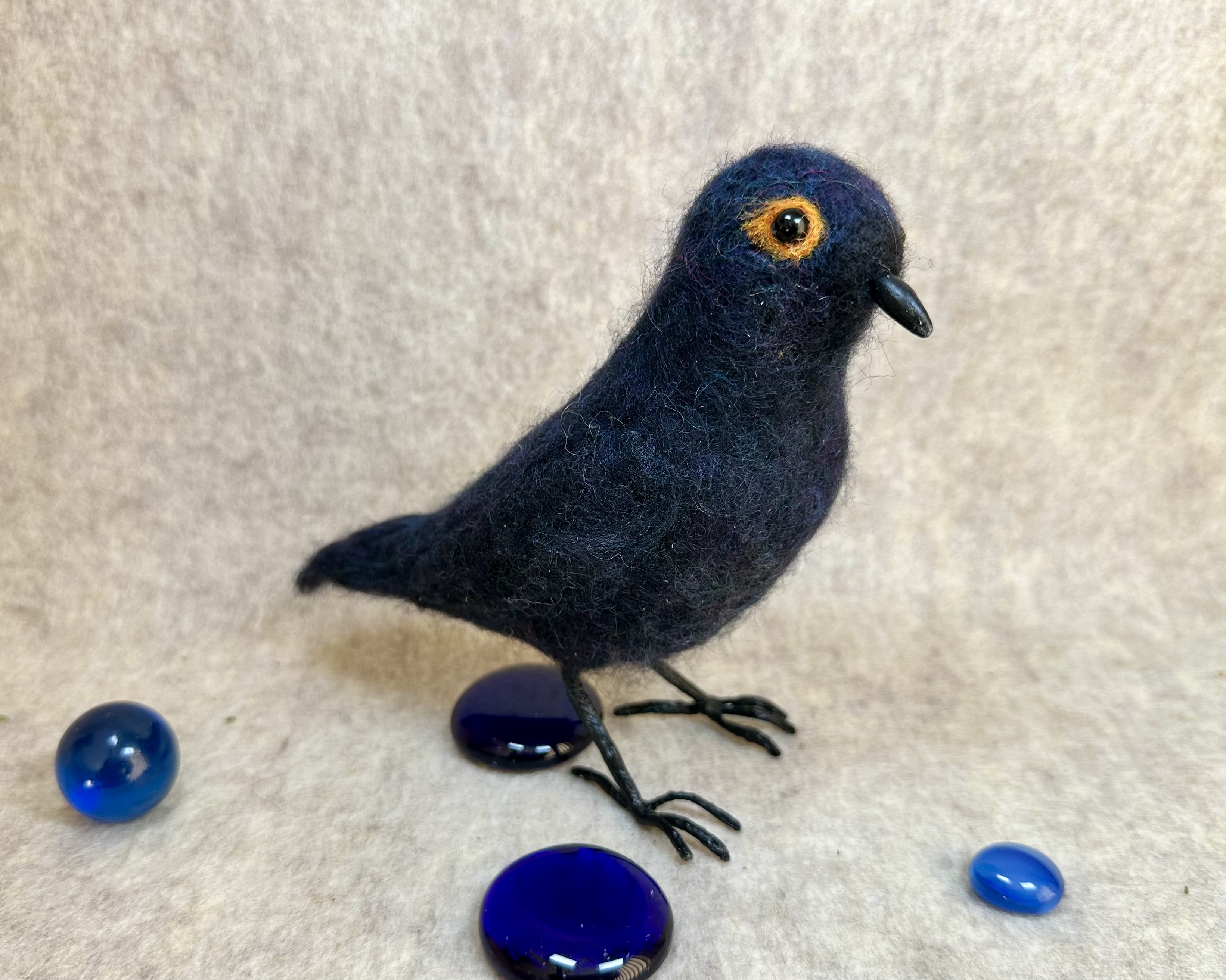 I lovingly handcraft each whimsical little creature, aiming to blend lifelike detail with a playful twist. Imagine them as realistic animals with just a touch of mischief! Most start with a tiny wire armature as their skeleton, which I then carefully wrap in wool, sculpting and shaping them through needle felting until they come to life, with soft, wooly "feathers" to complete the look. The wool I use is sourced from sheep grazing on farms across America, England, and Canada, adding a touch of international flair to each piece. Tiny beaks and hooves are either sculpted from clay and hand-painted or felted from wool, finished with a delicate beeswax coating. While these felted sculptures are crafted with joy and meant to bring smiles, they’re intended for display only—best kept out of the reach of curious little hands and paws.