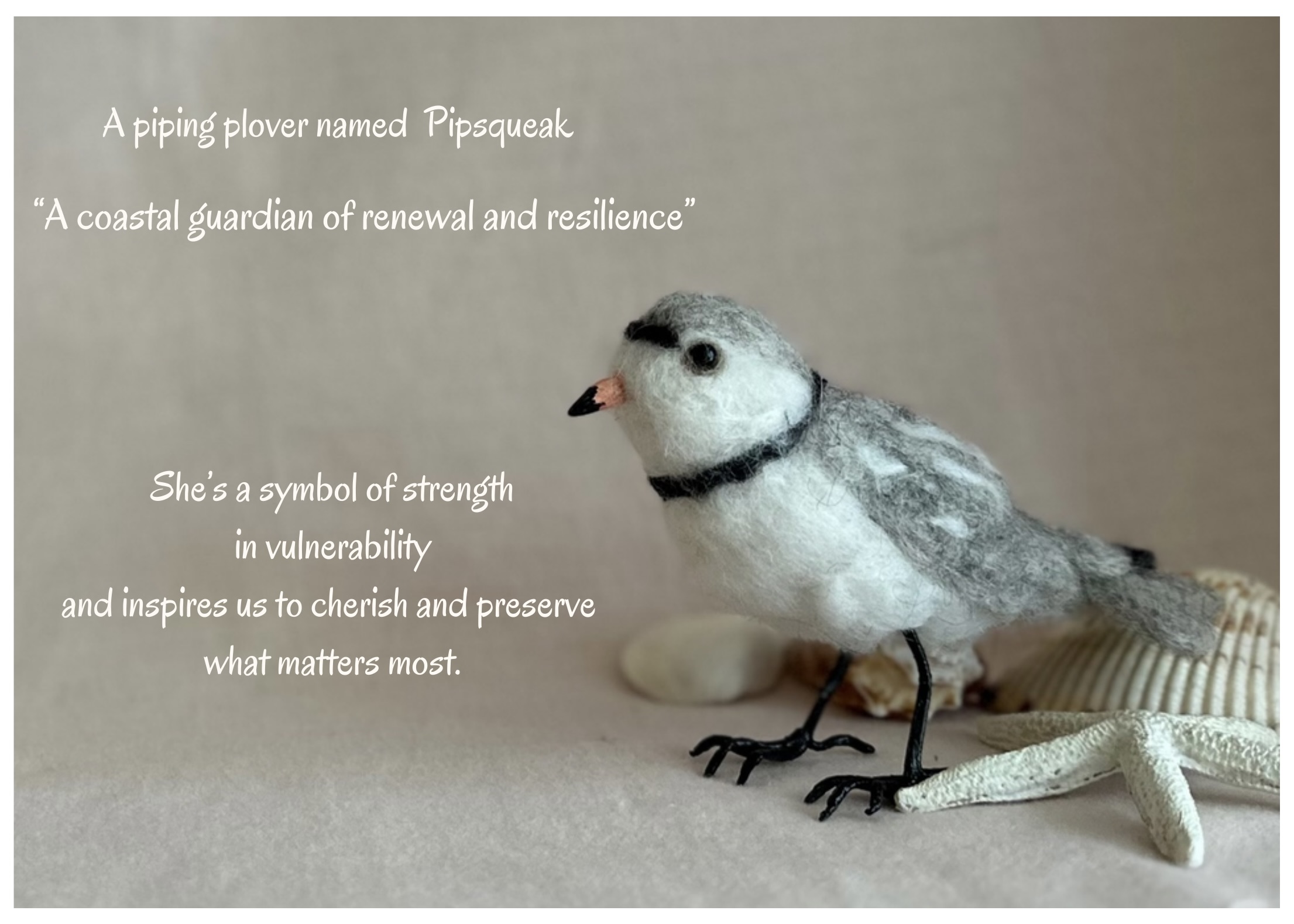 "The piping plover, known for its delicate beauty and protective nature, inspires us to cherish and preserve what matters most. She’s a symbol of strength in vulnerability and the importance of standing guard over our hopes and dreams."