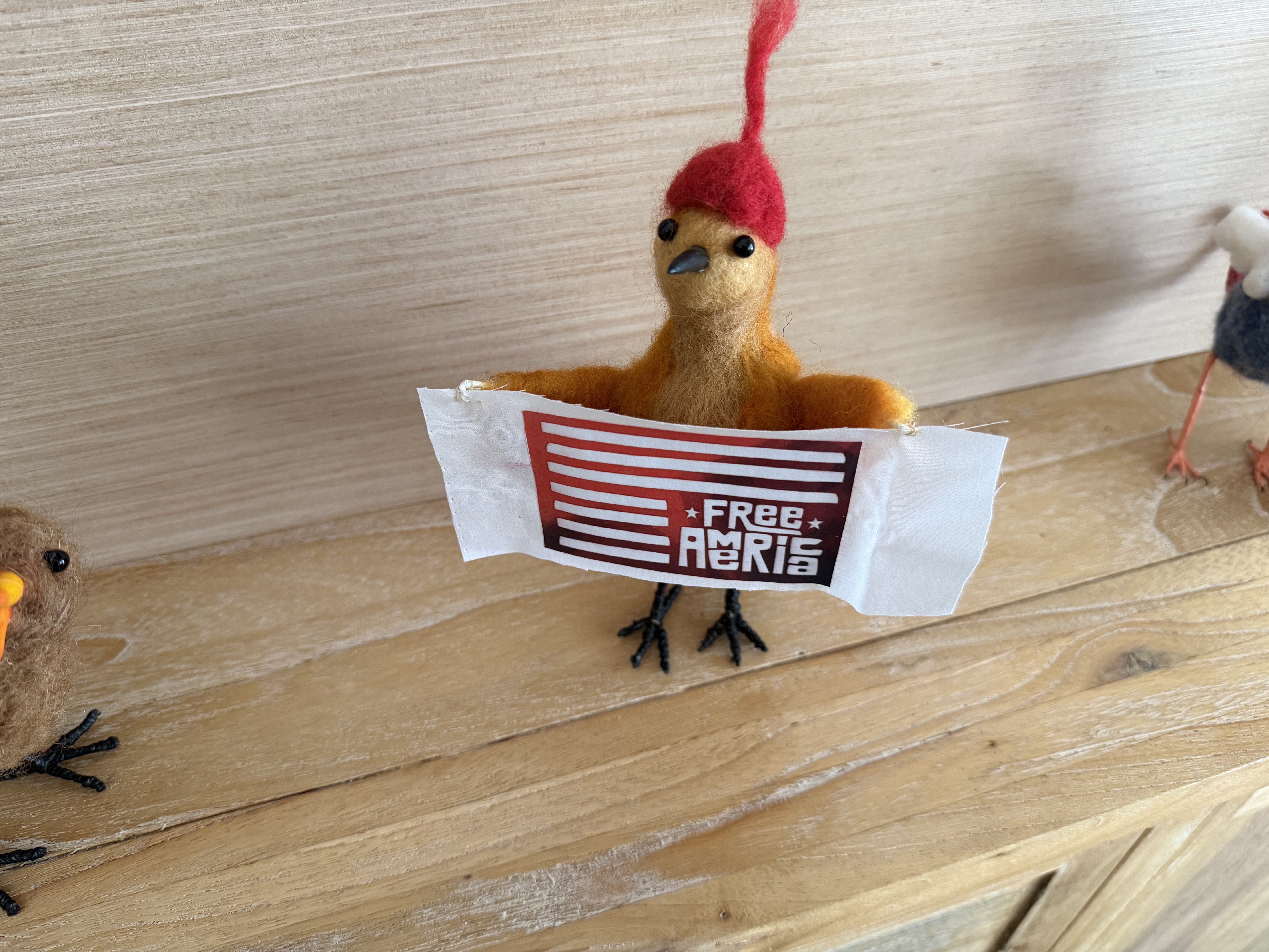 They arrived unplanned, needle felted from wool and made by necessity. Not polished, not perfect—but here, and loud. These handmade protest birds are small acts of fiber art resistance.