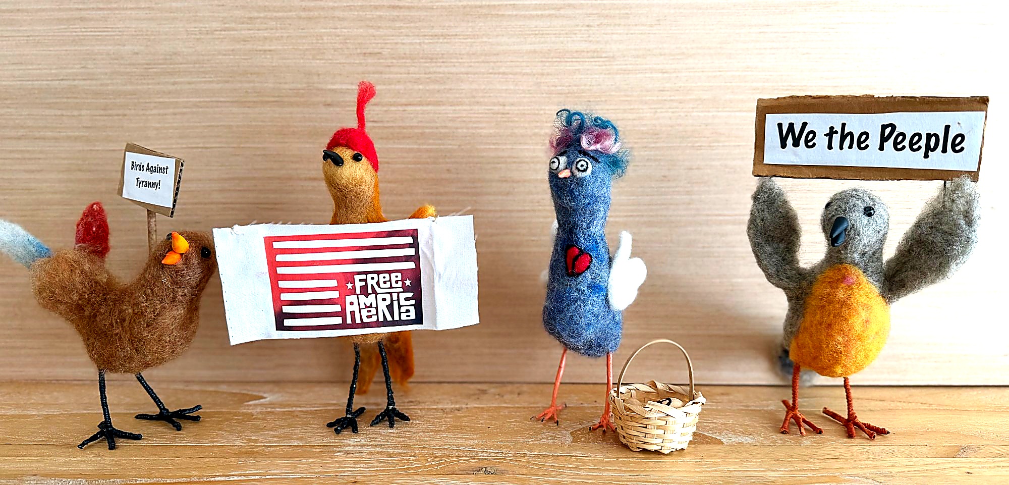 The Scrappy Chorus: Needle Felted Protest Birds - We The PEEPle Handmade Wool Sculpture