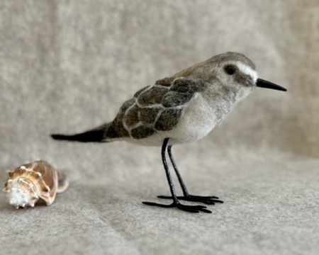 Sandra is 8.5" long and 5.5" high. Made with 100% wool, glass eye, clay beak.