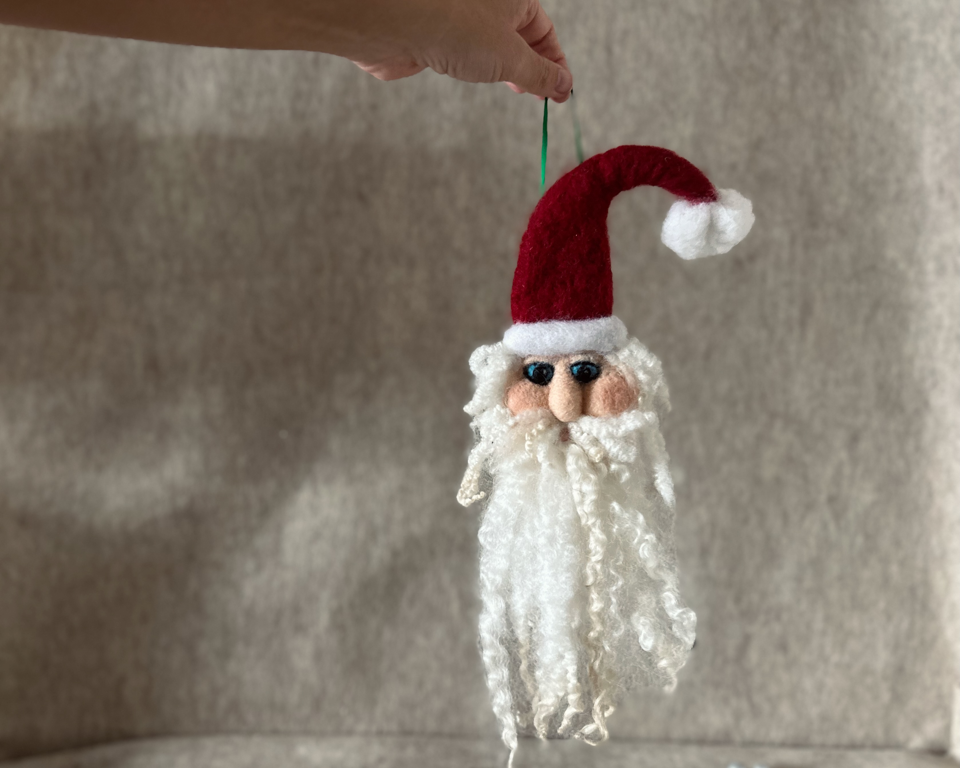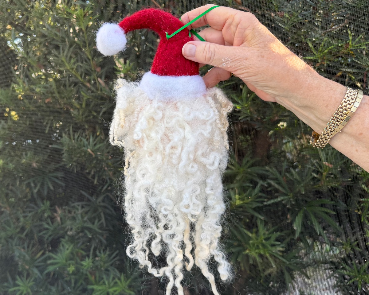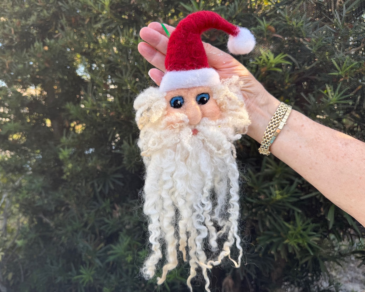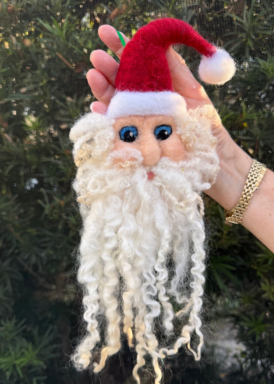 This handcrafted Santa ornament is an adorable addition to your holiday décor, made from 100% premium wool with a luxurious, soft beard crafted from extra-long, curly locks. Whether you hang him on your Christmas tree, door, or in your favorite window, he’s sure to become a beloved part of your seasonal traditions for years to come.