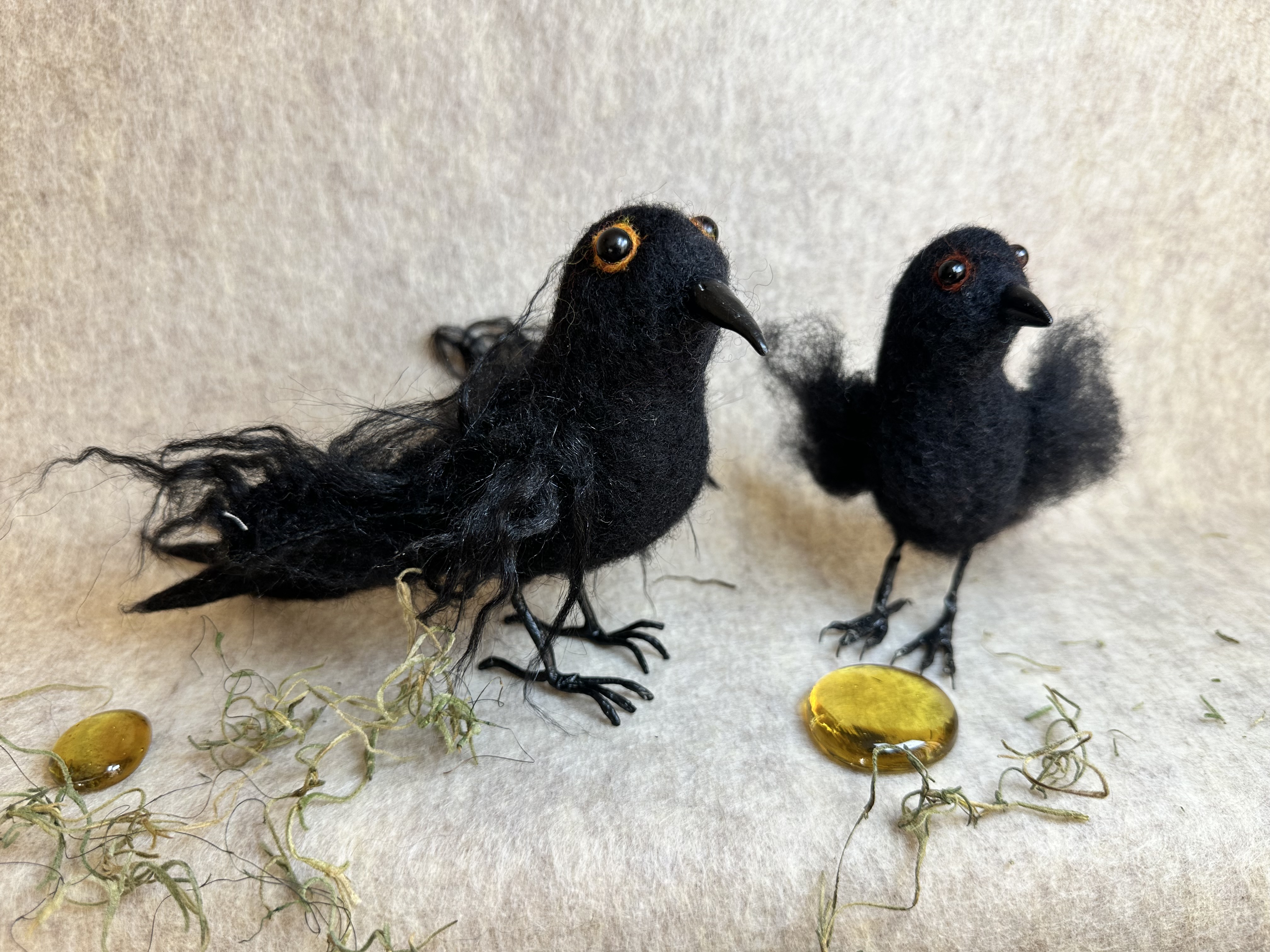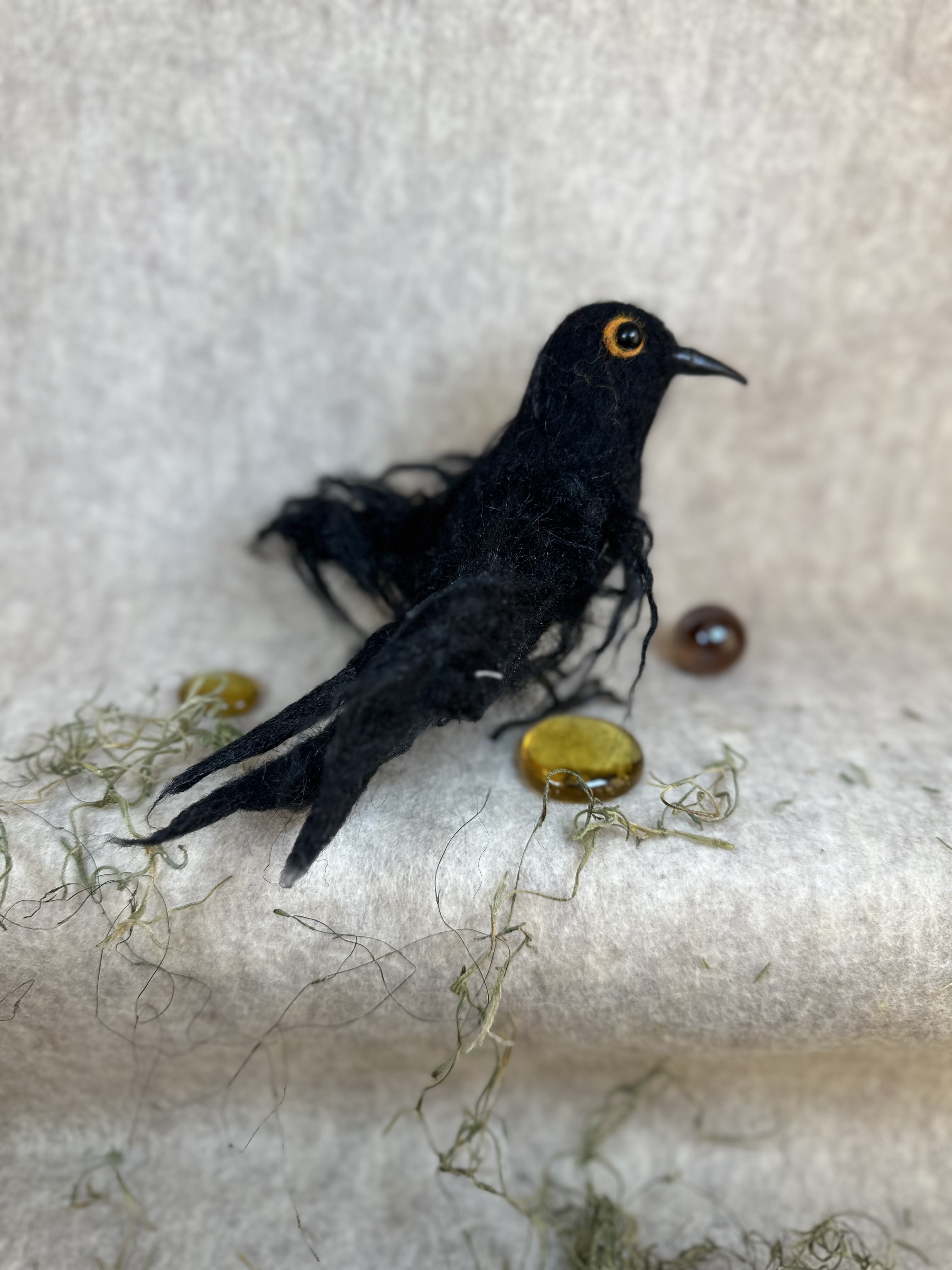 I lovingly handcraft each whimsical little creature, aiming to blend lifelike detail with a playful twist. Imagine them as realistic animals with just a touch of mischief! Most start with a tiny wire armature as their skeleton, which I then carefully wrap in wool, sculpting and shaping them through needle felting until they come to life, with soft, wooly "feathers" to complete the look. The wool I use is sourced from sheep grazing on farms across America, England, and Canada, adding a touch of international flair to each piece. Tiny beaks and hooves are either sculpted from clay and hand-painted or felted from wool, finished with a delicate beeswax coating. While these felted sculptures are crafted with joy and meant to bring smiles, they’re intended for display only—best kept out of the reach of curious little hands and paws.